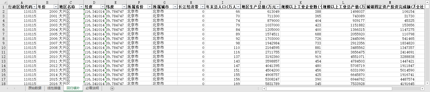 注:由于该方法填补数据较多,不能完全反应地区真实情况,谨慎使用。