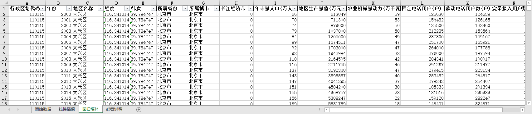 注:由于该方法填补数据较多,不能完全反应地区真实情况,谨慎使用。