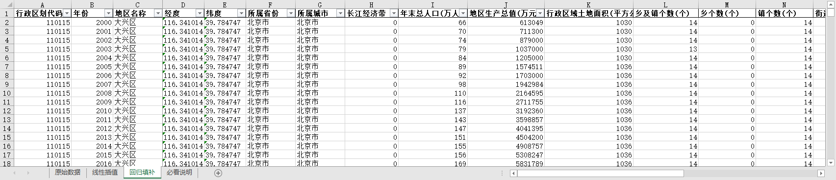 excel数据文件包原始数据(由于多年度指标不同存在缺失值)、线性插值、回归填补三个版本,提供您参考使用。