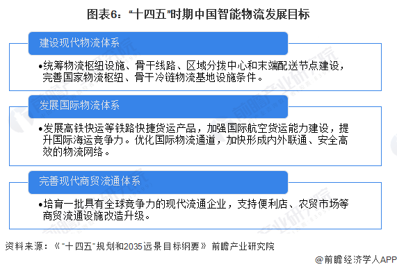 根据中国“十四五”规划纲要提出,建设现代物流体系,加快发展冷链物流,统筹物流枢纽设施、骨干线路、区域分拨中心和末端配送节点建设,完善国家物流枢纽、骨干冷链物流基地设施条件,健全县乡村三级物流配送体系,发展高铁快运等铁路快捷货运产品,加强国际航空货运能力建设,提升国际海运竞争力。优化国际物流通道,加快形成内外联通、安全高效的物流网络。完善现代商贸流通体系,培育一批具有全球竞争力的现代流通企业,支持便利店、农贸市场等商贸流通设施改造升级,发展无接触交易服务,加强商贸流通标准化建设和绿色发展。加快建立储备充足、反应迅速、抗冲击能力强的应急物流体系。