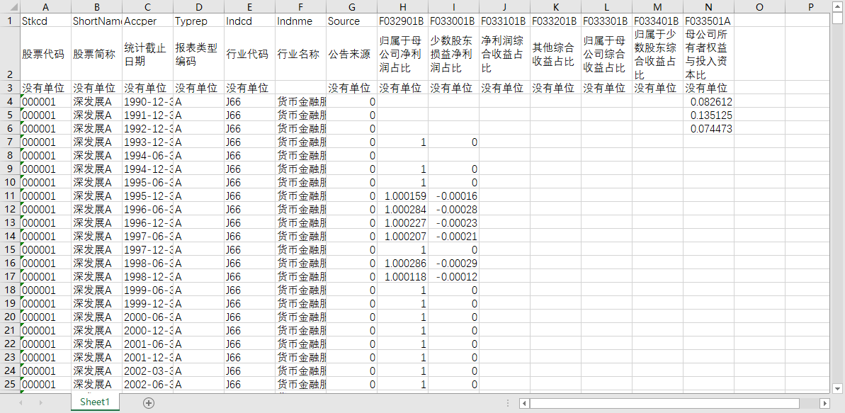 股票代码 股票简称 统计截止日期 报表类型编码 行业代码 行业名称 公告来源 归属于母公司净利润占比 少数股东损益净利润占比 净利润综合收益占比 其他综合收益占比 归属于母公司综合收益占比 归属于少数股东综合收益占比 母公司所有者权益与投入资本比