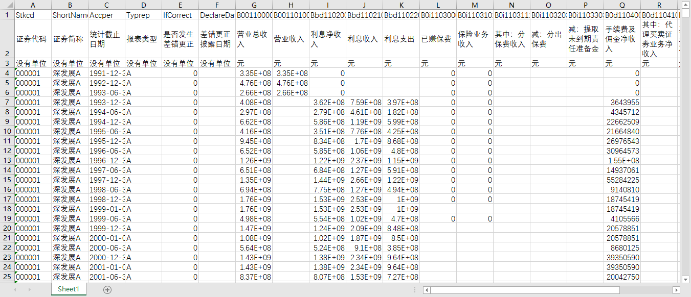 证券代码 证券简称 统计截止日期 报表类型 是否发生差错更正 差错更正披露日期 营业总收入 营业收入 利息净收入 利息收入 利息支出 已赚保费 保险业务收入 其中:分保费收入 减:分出保费 减:提取未到期责任准备金 手续费及佣金净收入 其中:代理买卖证券业务净收入 其中:证券承销业务净收入 其中:受托客户资产管理业务净收入 手续费及佣金收入 手续费及佣金支出 其他业务收入