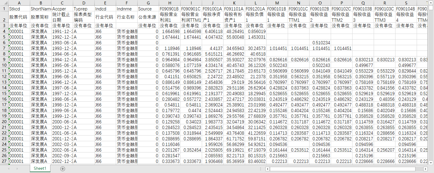 股票代码 股票简称 统计截止日期 报表类型编码 行业代码 行业名称 公告来源 每股营业利润1 每股营业利润TTM1 每股净资产1 每股有形资产1 每股负债1 每股收益1 每股收益TTM1 每股收益2 每股收益TTM2 每股收益3 每股收益TTM3 每股收益4 每股收益TTM4