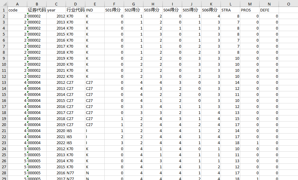 2012-2022年公司战略(stata计算,Bentley等、孙健等)