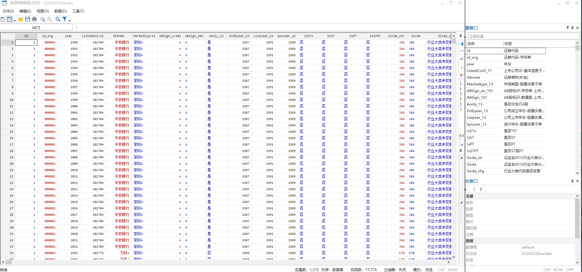二、年度数据1990-2022年度:dta格式文件(含公司治理、审计、专利等数据整理),1.46GB