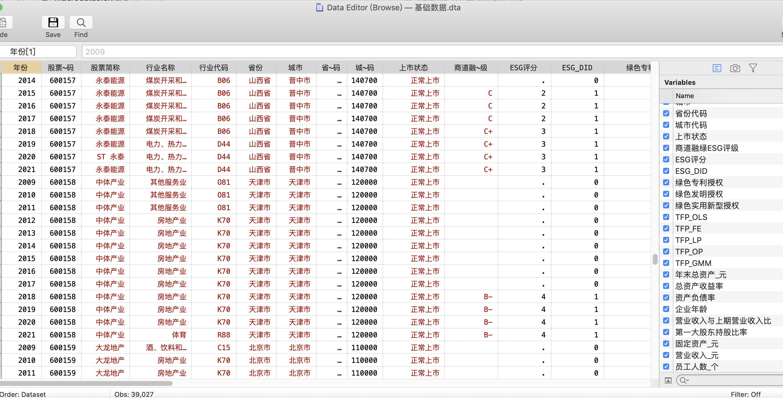 数据名称:A 股上市公司ESG 评级对企业绿色转型的影响-数量经济技术经济研究2009-2021