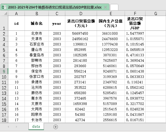 2003-2021年284个地级市进出口贸易总额占GDP的比重.xlsx