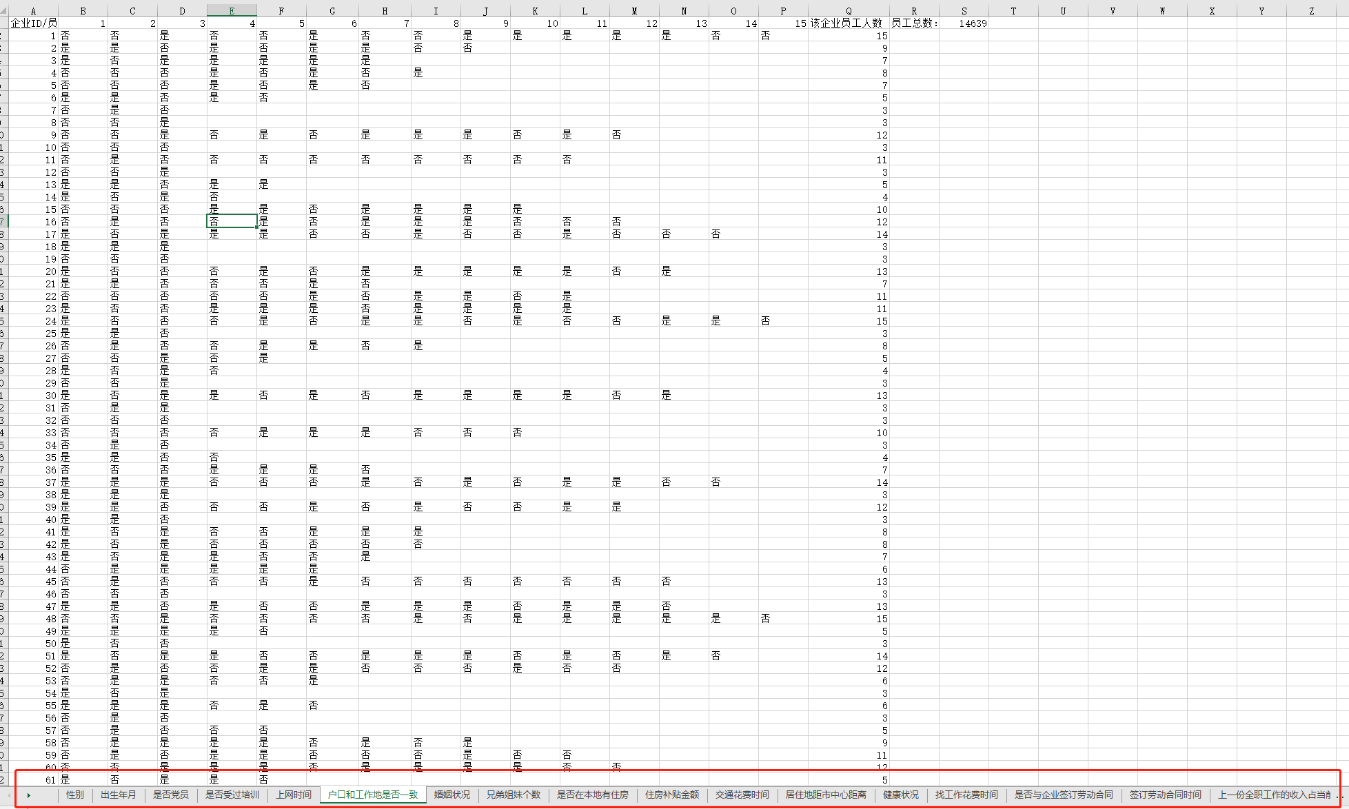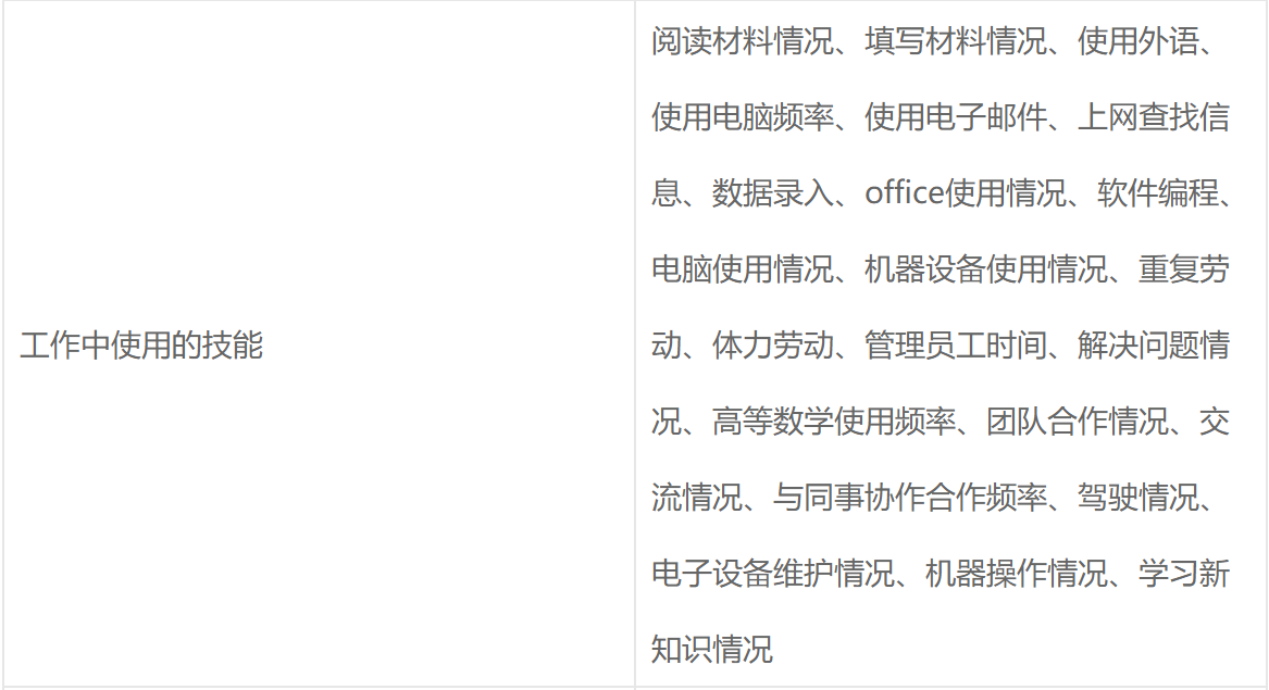 性别、出生年月、是否党员、是否受过培训、上网时间、户口和工作地是否一致、婚姻状况、兄弟姐妹个数、是否在本地有房、住房补贴金额、交通花费时间、居住地距离市中心距离、健康情况、找工作花费时间、是否与企业签订劳动合同、上一份全职工作的收入占当前月收入的比例、月收入、月收入中奖金所占比例、职务、周工作天数、天工作小时数、是否经常请假、是否加班、是否出现过劳资争议、是否出现过劳资争议、晋升次数、工作内容、是否参加职工养老保险、每月医疗费花费金额、是否参加职工医疗保险、是否参加失业保险、是否有带薪年假、是否有健康体检、是否有旅游活动、工作满意度、生活满意度、企业内部的收入差距、工作努力程度、工作严谨性、外向性、顺从型、未来打算在本地工作吗