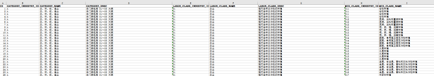 2017年国民经济行业分类表,包含门类、大类、中类、小类等数据行业经济分类在经济金融学术研究中常有用到,通常各个数据库分类标准不一致,需要进行统一,2017年国民经济行业分类是当前最权威官方的分类方式。此外,现有的行业分类表多为pdf或者excel总分格式,不能直接用于数据匹配,本人手工整理成面板数据格式,方便数据处理时匹配