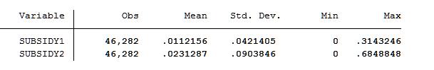 SUBSIDY1 ZF环保补贴,企业当年收到ZF环保补贴金额占企业总资产的比例×100