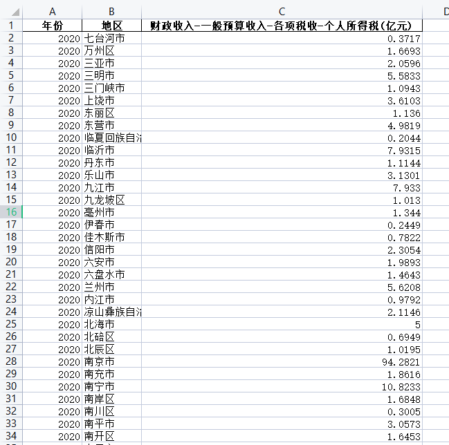 一、数据介绍数据名称:全国各城市-财政收入-一般预算收入-各项税收-个人所得税