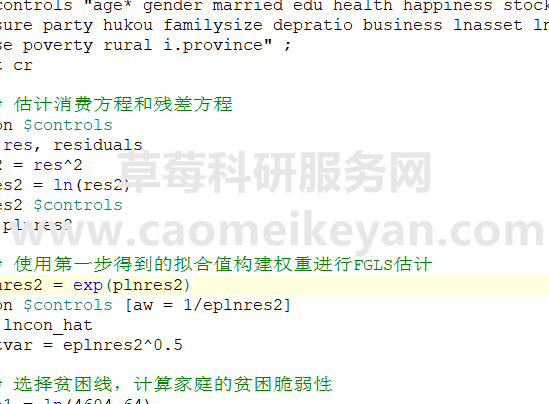 第二步 使用第一步得到的拟合值构建权重进行FGLS估计