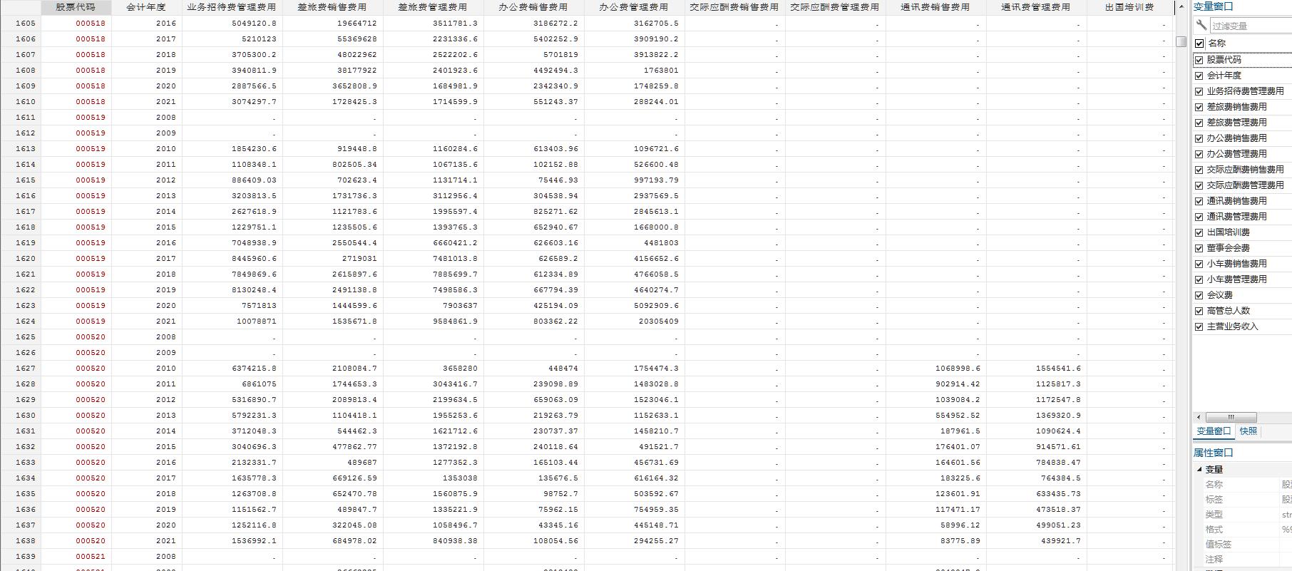 高管在职消费模块依据前人研究经验,区分为直接法下和间接法下的高管在职消费数据,这些数据主要包括业务招待费、差旅费、办公费、会议费、交际应酬费等多类高管在职消费支出,其中,根据这些科目的对象又将其归类为管理费用和销售费用下的数据。