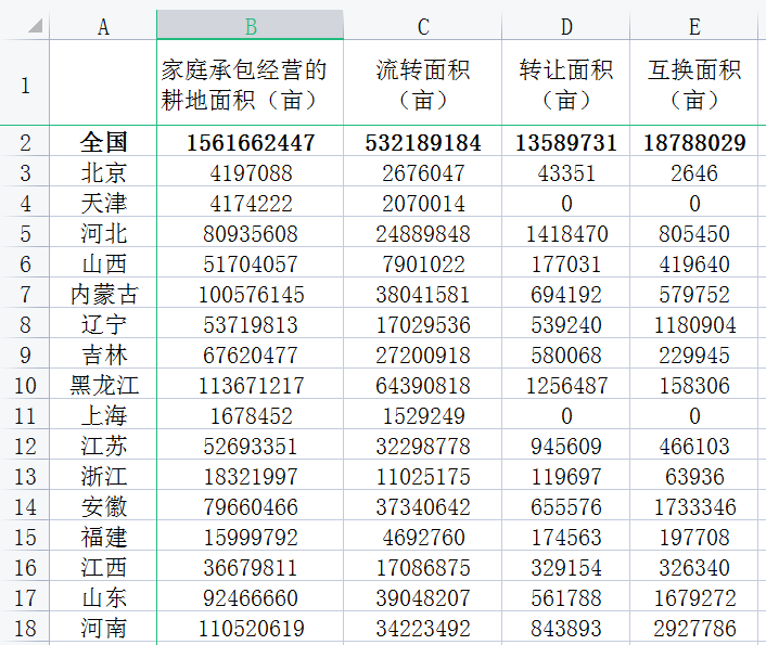 数据说明:2020年起,转让面积、互换面积、流转面积(包括出租(转包)面积、入股面积和其他形式流转面积)分别进行统计,数据中同时给出了上述三类面积的数据,三者之和即为以往报告中统计的家庭承包耕地流转总面积。