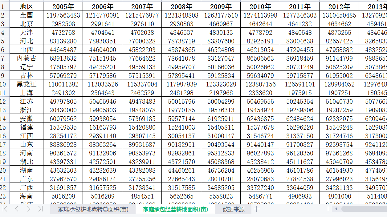数据指标:家庭承包耕地流转总面积(亩)、家庭承包经营耕地面积(亩)