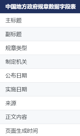 中国地方ZF规章数据,来源于省、自治区、直辖市和设区的市、自治州的人民ZF网站和地方ZF公报,包含主标题、规章类型、制定机关、正文内容等字段。