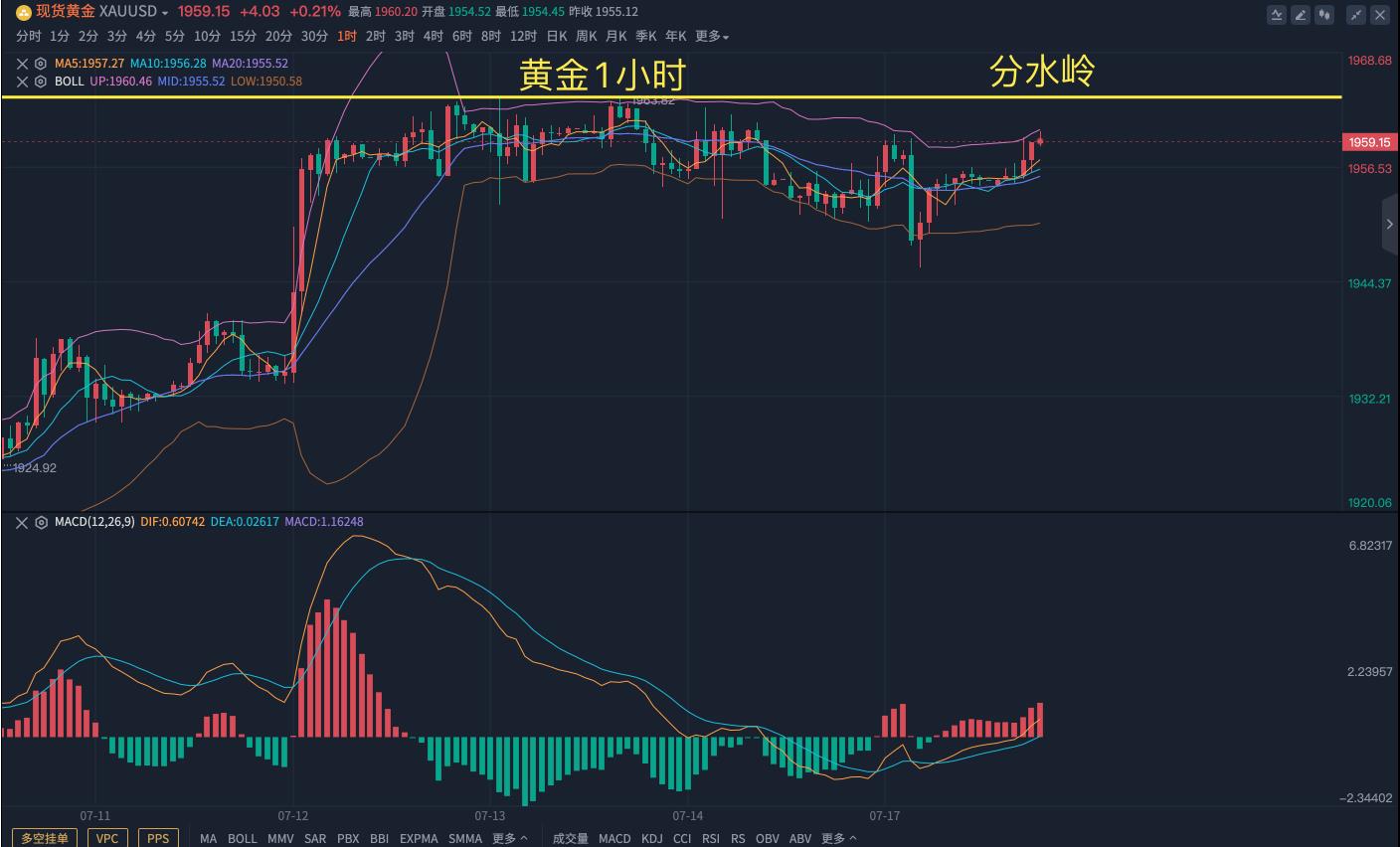 周一,金价反弹之后来了一波下跌,从亚盘下跌到了1945美元附近,走了一波向下的回探,但整个行情的波动还是以过山车为主,卡在1959-1945的区间之内,上周五安排了一次1955的多,看着昨天的上涨有点吃力,盘中就通知在1958附近离场了,现在反弹还是看1965的点,如果走成了:亚盘上涨,欧盘延续,美盘前的回撤就是“诱空”。这个口诀是需要等待美盘前来根据亚欧盘的力度决定的。