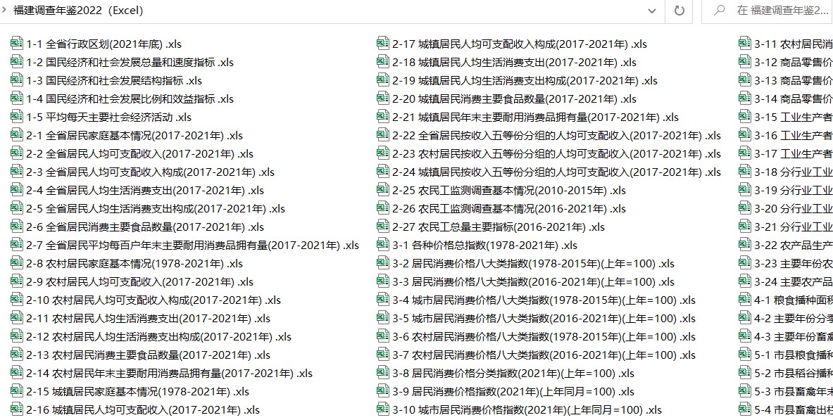《福建调查年鉴2022》,全书收录了2021年和历史主要年份福建省、市、县经济和社会发展等各方面的抽样调查数据,是一部从不同侧面反映福建经济和社会发展情况的资料性书籍。二、全书内容分为六篇:1.综合;2.住户调查;3.价格调查;4.农村调查;5.市县调查主要指标。并附录:全国及各省(区、市)调查主要指标。各篇首均有简要说明,各篇末均附有《主要统计指标解释》。三、本资料使用的度量衡单位均采用国家统一标准计量单位。四、本资料使用符号说明:“#”表示其中项;“…”表示不足小数位的数据;“空格”表示没有或未掌握该指标数据。五、本资料部分数据由于单位取舍不同而产生的误差均未作调整。六、本年鉴所涉及的全国性统计数据,除特殊注明外,均为包括香港、澳门特别行政区和台湾省数据。