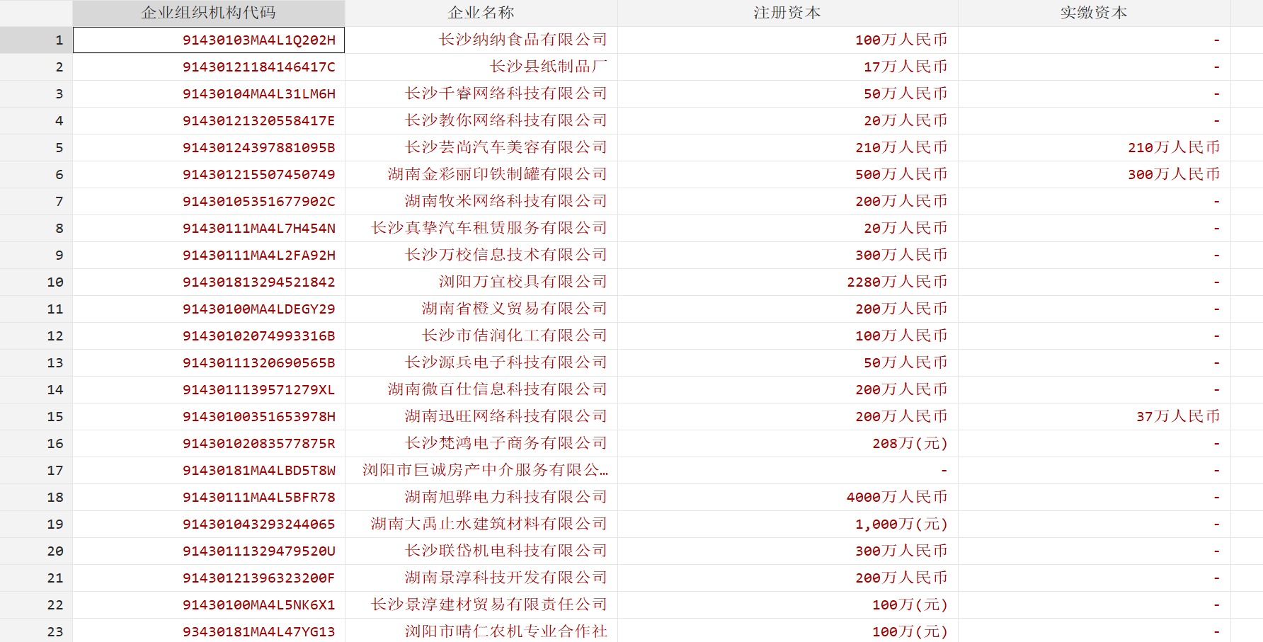 中国工商业注册信息数据(详细版)