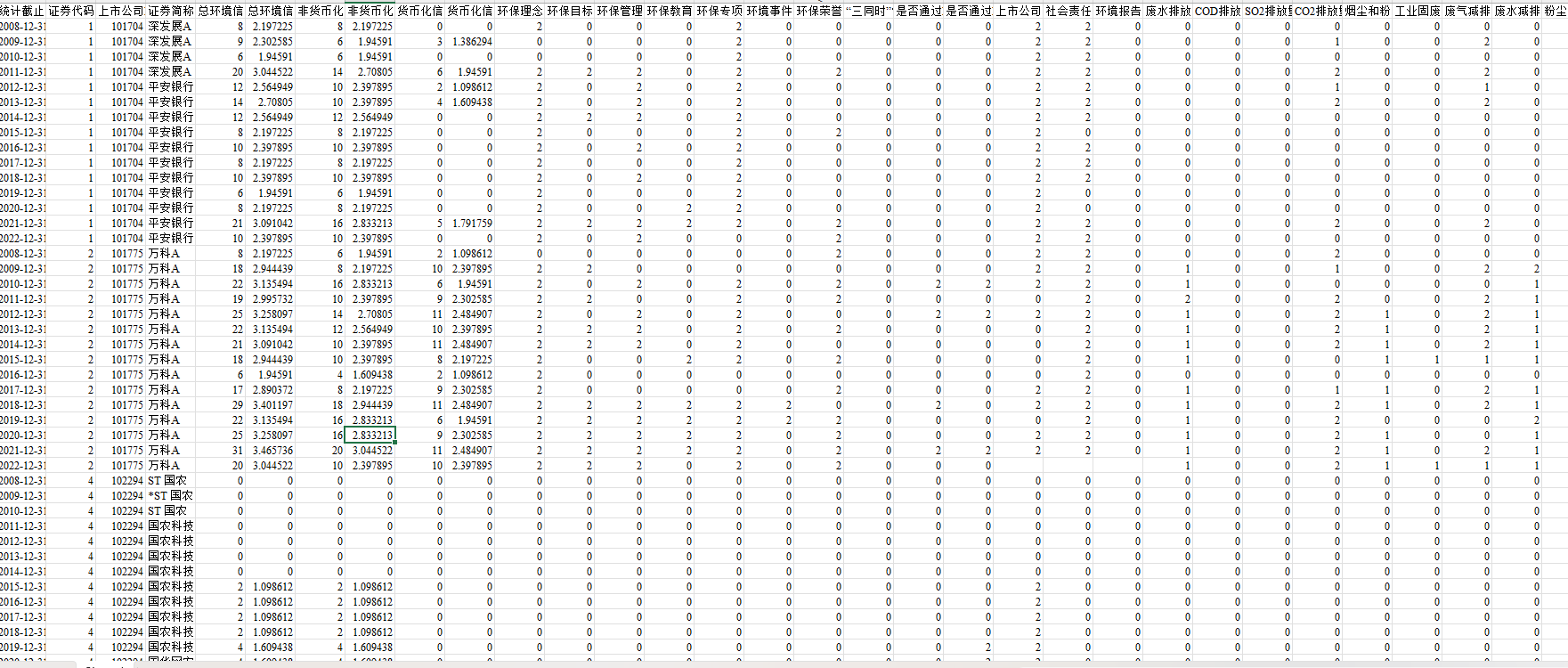参考C刊《证券市场导报》(孔东民,2021),按照是否货币化分类企业对于环境信息的披露,对于货币化的信息,定量和定性结合披露的赋值为2,定性的指标赋值为1,没有披露的指标赋值为0;对于非货币化的信息,披露的指标赋值为2,没有披露的指标赋值为0。具体而言,环境负债披露、环境业绩与治理披露中的指标属于货币化的信息,环境管理披露、环境认证披露、环境信息披露载体中的指标属于非货币化的信息。两种信息共有五个方面、25个评分项目,对这些项目的评分进行加总后做对数处理得到Eidq,这一指标综合反映了企业的环境信息披露质量。