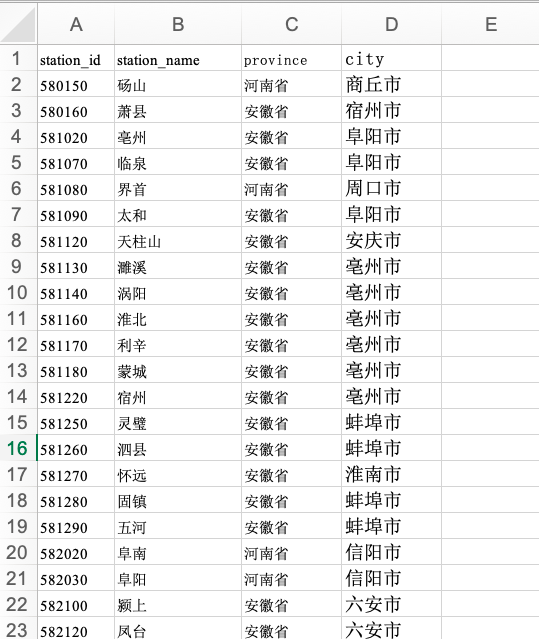 中国地面气象台站已匹配地级市(变量名:stationid、stationname、province、city)