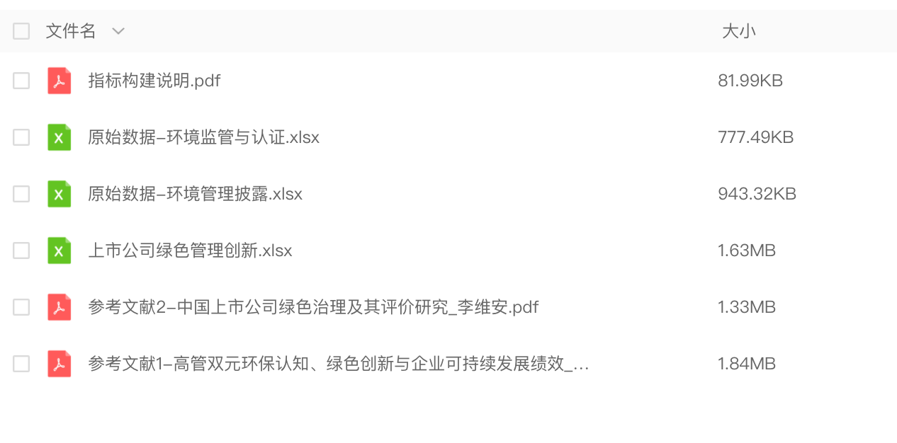 上市公司绿色管理创新.csv; 原始数据-环境监管与认证.csv; 原始数据-环境管理披露.csv;参考文献1-高管双元环保认知、绿色创新与企业可持续发展绩效.pdf;参考文献2-中国上市公司绿色治理及其评价研究.pdf