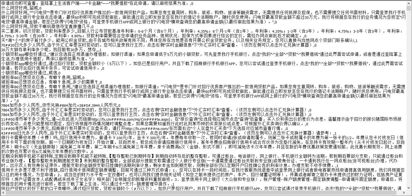 77万条金融行业问答数据集银行保险证券投资征信信托存款贷款等问题回答NLP自然语言处理