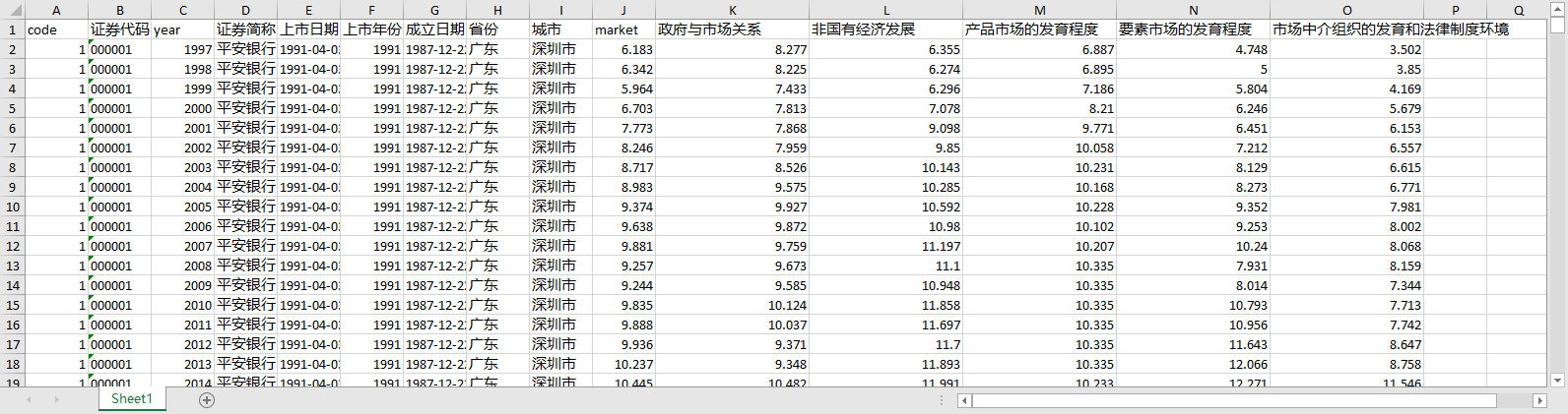 二、上市公司企业匹配樊纲分省份市场化指数各分项指数1997-2023非国有经济发展产品市场的发育程度要素市场的发育程度市场中介组织的发育和法律制度环境ZF与市场关系(附最新计算代码,匹配公司、含参考资料数据)