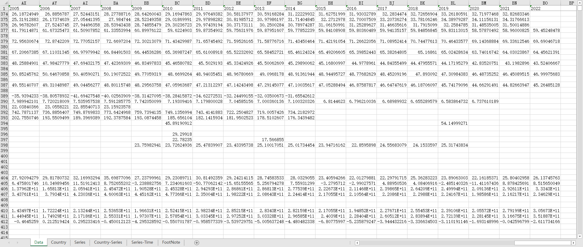 The World Development Indicators (WDI)数据库是世界银行(World Bank)发布的一套全球性开放数据集,它包含了各种国家和地区的经济、社会、环境等方面的数据指标。国内外众多科研人员利用WDI数据库来进行跨领域的研究和分析,为国家的发展、政策制定以及可持续发展做出贡献。