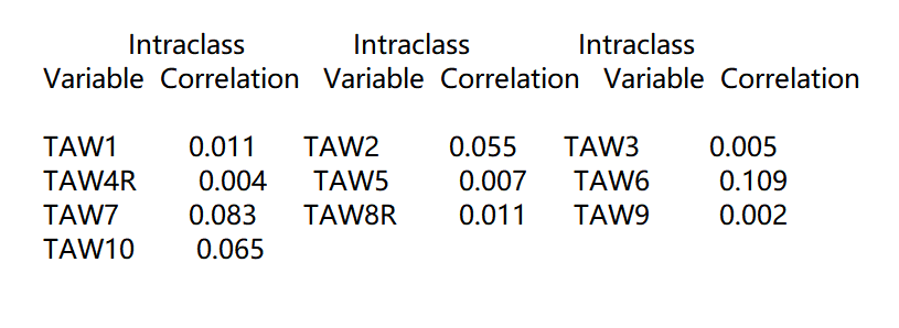 以下,是我计算的icc1值。10个都是测量一个潜变量的观察变量。按理应该我只得到潜变量的icc值。请问是把观察变量求均值再计算还是计算得到所有icc后取均值得到潜变量的icc值。。。