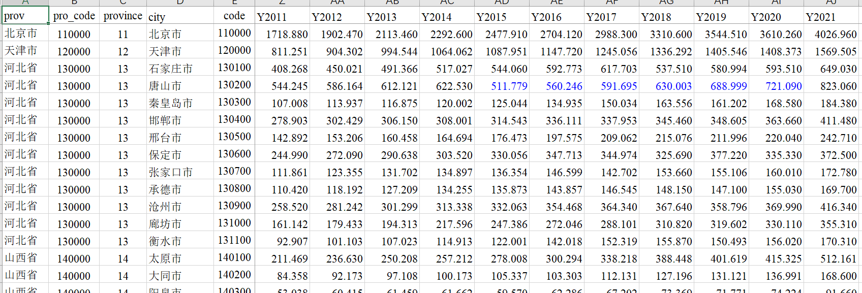 各地级市GDP数据