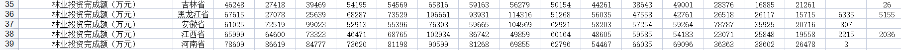 当年造林面积(公顷)、林业投资完成额(万元)