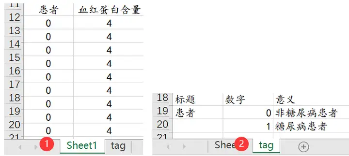 首先将数据整理成正确的格式,一般一个X为一列,Y为一例,并且分析的数据带有数据标签的,需要另添加一个表格进行说明,数据格式如下(特别说明:SPSSAU默认的切割点为1):