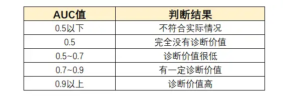 一般诊断价值判断可以根据AUC指标,判断如下: