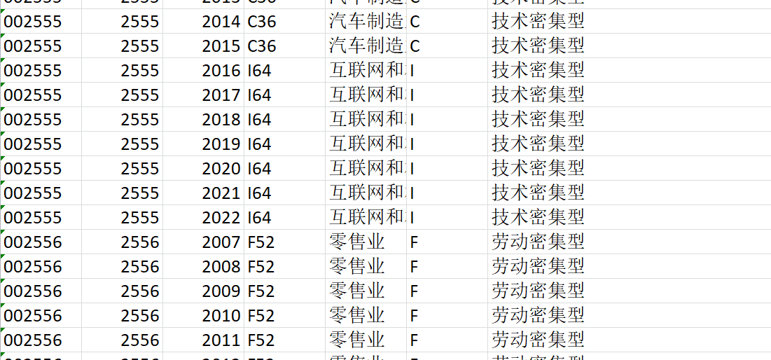 【自用整理!】2000-2022上市公司要素密集度(资本密集型、劳动密集型)合集!