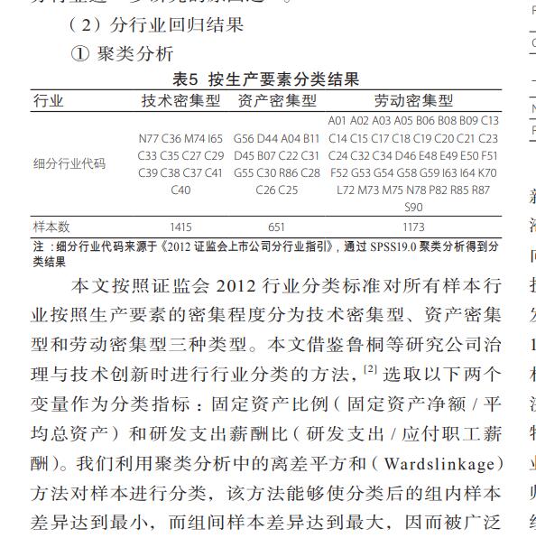 :参考《南开管理评论》尹美群(2022)老师的研究,本文按照证监会 2012 行业分类标准对所有样本行业按照生产要素的密集程度分为技术密集型、资产密集型和劳动密集型三种类型,具体为