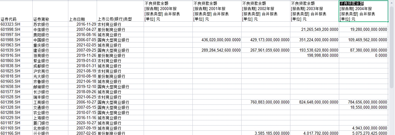 证券代码 证券简称 上市日期 上市公司银行类型 年份 不良贷款余额 不良贷款拨备覆盖率 不良贷款比率 净利差 净息差 净息差公布值 单一最大客户贷款比例 存款总额 存贷款比率 成本收入比 最大十家客户贷款占资本净额比例 生息资产 生息资产收益率 计息负债 贷款减值准备 计息负债成本率 贷款总额 贷款损失准备充足率 非利息收入 非利息收入占比 非生息资产 非计息负债 加权风险资产净额 库存现金 拨贷比 无息负债 杠杆率 核心资本充足率 核心资本净额 流动性覆盖率 生息资产平均余额 计息负债平均余额 资本充足率 银行理财产品余额 资本净额 一级资本充足率2013 一级资本净额2013 信用风险加权资产2013 加权风险资产净额2013 市场风险加权资产2013 操作风险加权资产2013 核心一级资本净额2013 核心一级资本充足率2013 资本充足率2013 资本净额2013