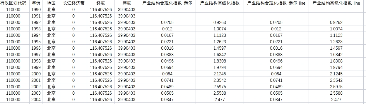 1、数据源名称:1990年到2021年中国产业结构协调高级化、合理化
