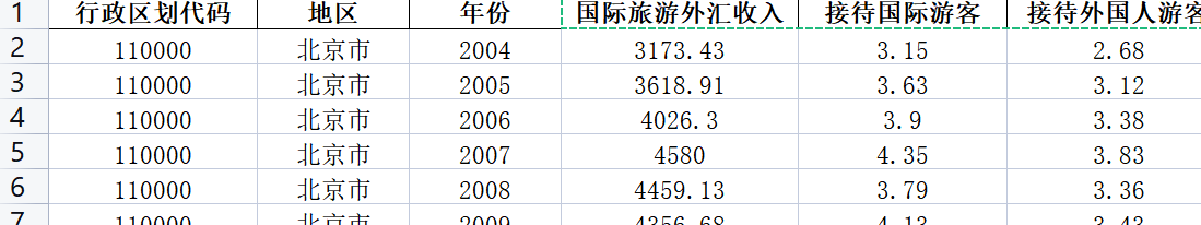 指标包括:国际旅游外汇收入 接待国际游客 接待外国人游客