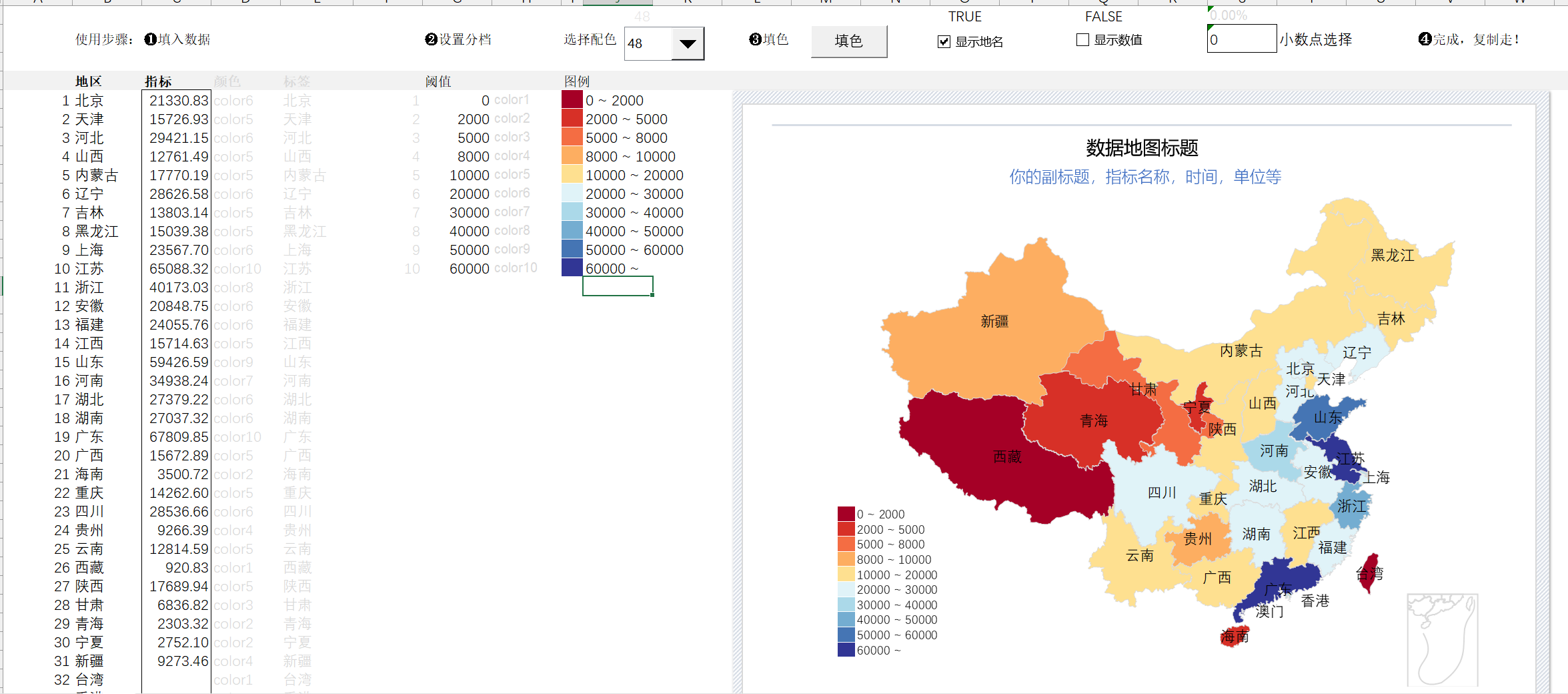 可制作地图尺度包括:世界、国家、省、市、县、区级地图(只要有地图素材就可以做,文件内包括了世界、各大洲、美日英、中国国家省市县级别的素材)