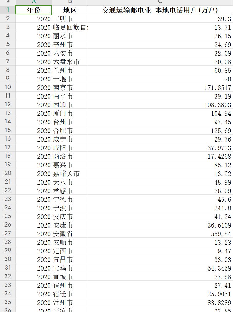 本数据展示了全国各城市的本地电话用户数量。通过对这些数量的分析,我们可以了解全国各城市通信设施建设的发展情况、人口密度以及工业经济的发展程度等方面的信息。此数据不仅可供政府部门制定信息技术政策,还可以为企业投资提供重要参考。同时,这项数据的分析也可以帮助我们了解中国的城市化进程和经济发展趋势,从而更好地把握当前经济形势,并采取相应措施应对数据名称:全国各城市-交通运输邮电业-本地电话用户