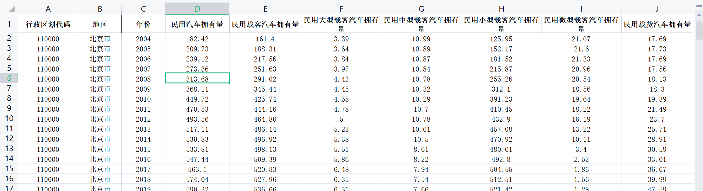 省级民用汽车拥有量等相关数据2004-2020.xlsx
