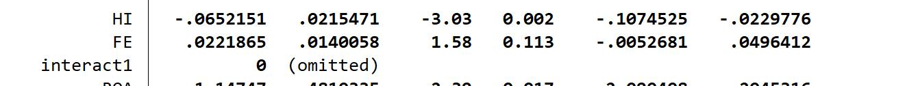 给我一把斧头 发表于 2023-8-6 18:04 交互项可能是共线性问题导致了omitted,可以对解释变量和调节变量进行中心化后,再进行相乘