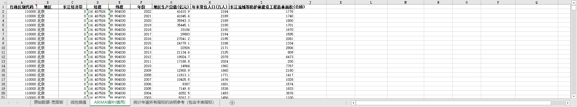 excel数据文件包原始数据-宽面板(由于多年度指标不同存在缺失值)、线性插值、ARIMA填补三个版本,提供您参考使用。
