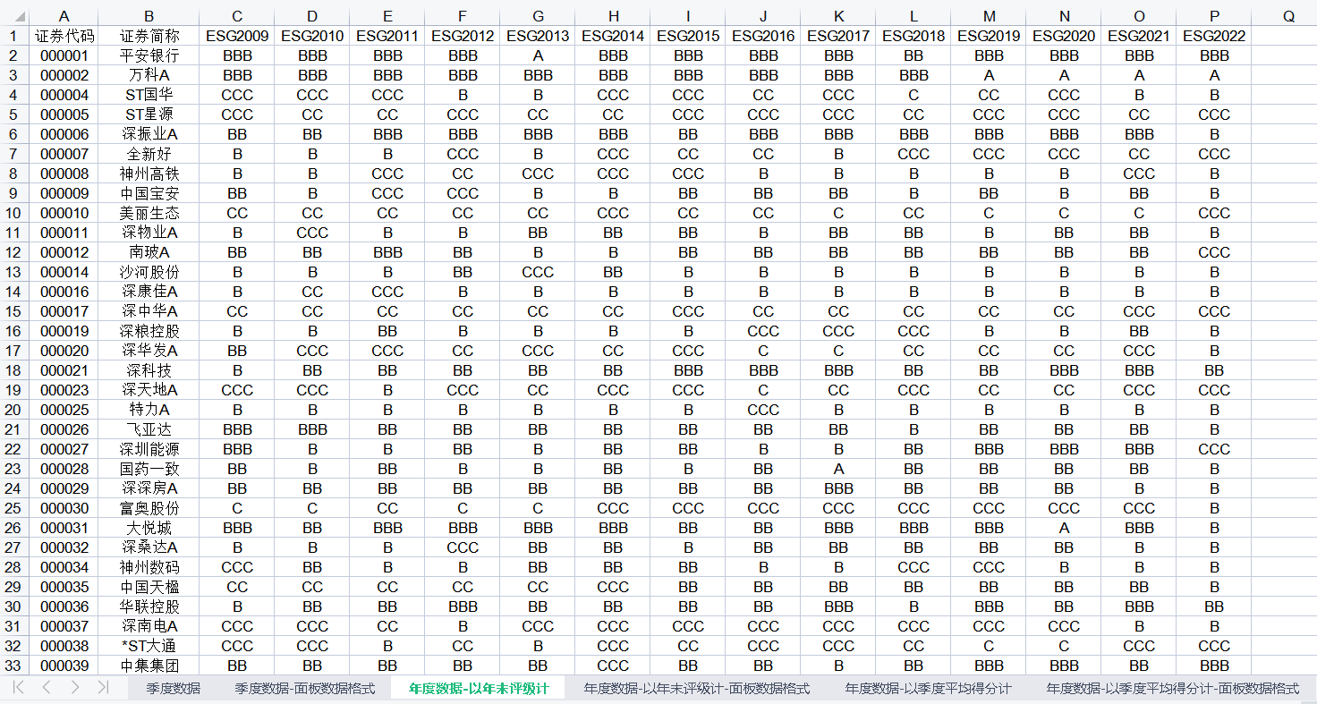2009-2022年上市公司华证ESG评级评分季度数据年度数据:包括季度数据、季度面板数据、年末数据、年末面板数据、以季度平均得分数据、季度平均得分面板数据。在国际经济、企业创新领域均有应用,具有较高可信度与研究价值。
