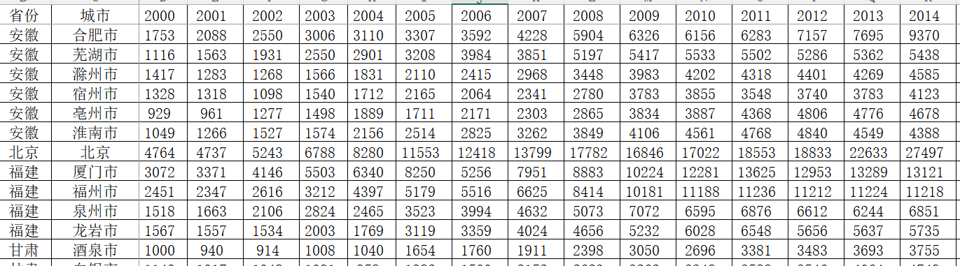 数据缺失:西北地区部分城市的早期年份数据缺失,其他地区个别城市存在个别年份数据缺失,介意勿扰!数据完整度97%以上!