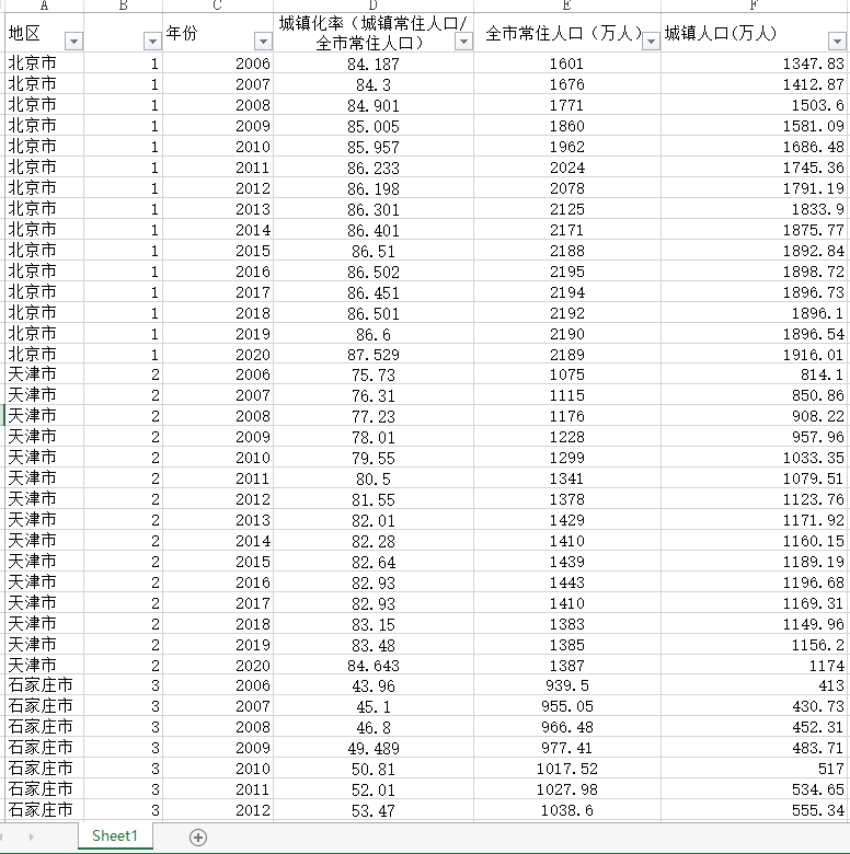 2006-2020中国全国各地级市城市常住人口、城镇化率(无缺失值)