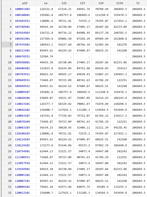 各位老师好,我想要通过∑sa* 0.08*(1.08^(i-22)) * 1.053^(59-i)的式子来计算样本个体从第22岁到59岁(即i从22至59)的值,使用forvalue循环来做,但是只能计算出首个样本的值,不知道哪一步写错了。