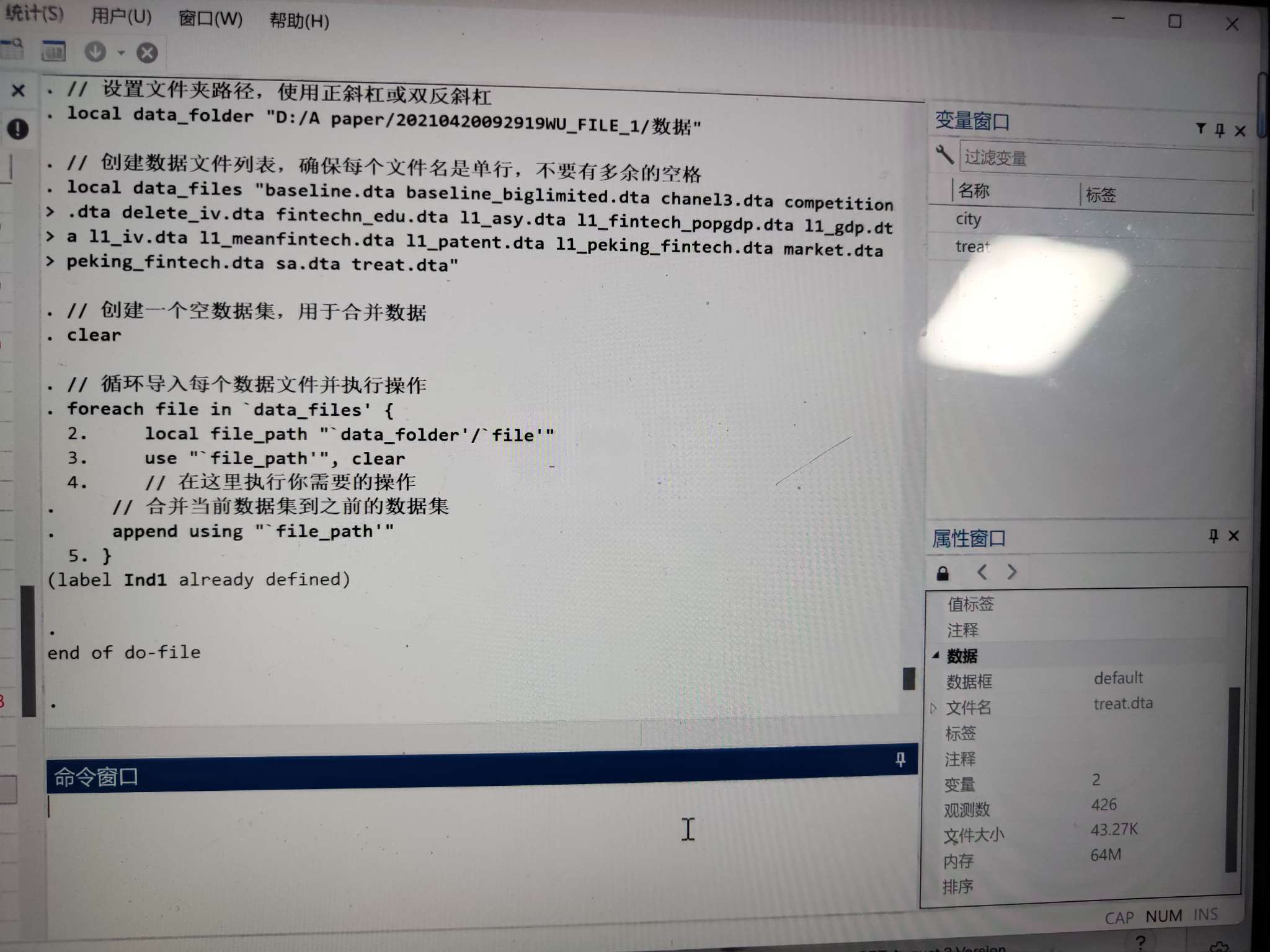 求助stata打开多个dta文件