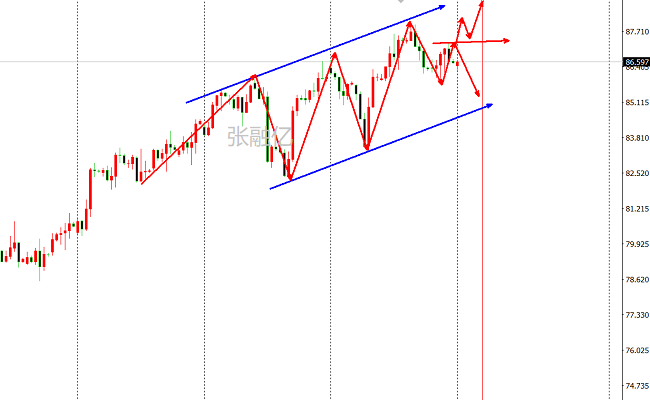 原油市场上周开盘在82.88美元/桶,后行情先回落给出79.86的周线低点后行情收到本轮上行趋势线支撑强势拉升,周线最高触及到了84.92美元/桶,后行情整理,周线最终收线在了83.08美元/桶,后行情以一根下影线长于上影线的类启明星形态收线,而这样的形态收尾后,原油迎来调整。4小时图局部上涨放缓,稍有放缓震荡当中,失守了中轨的支撑打破了强势上涨格局,目前进入修正蓄势,等待重新启稳上涨。4小时图仍处于上升通道中运行,同时也是震荡式台阶上行,次低点80.0附近。综上所述张融亿总结:原油高位震荡中,今日操作上考虑高空低多策略,上方关注83.7-84.3美元/桶阻力,下方关注82.2-81.1美元/桶支撑。